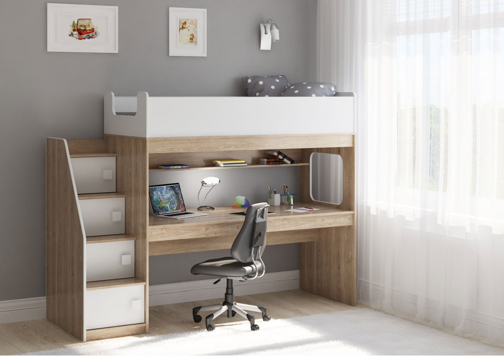 Учебная зона со столом под спальным местом открывает возможности для письменных работ,а также здесь удобно расположить ноутбук.
